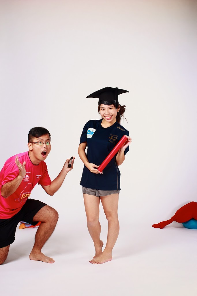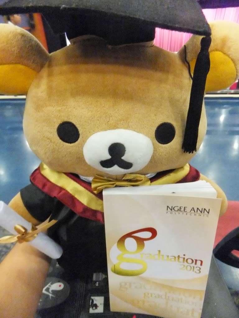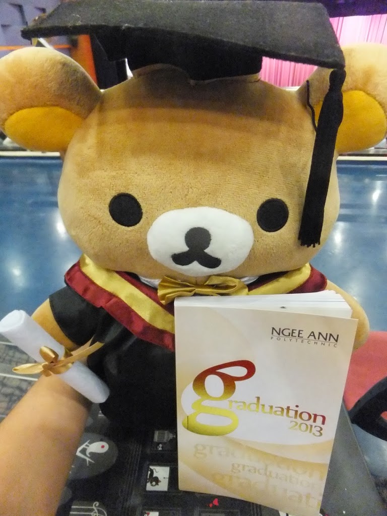 Then this is me and my oversized gown… This is the smallest size liao… when we were renting the gown, it is so irritating :( the co-op (ngee ann bookstore) like make things difficult for me.. she first gave me XS when i booked XXXS (3xs) then after which she gave me (3XS) correct size but it is torn… >.<lll is like… last day in ngee ann liao, auntie, dont make things difficult for me leis…