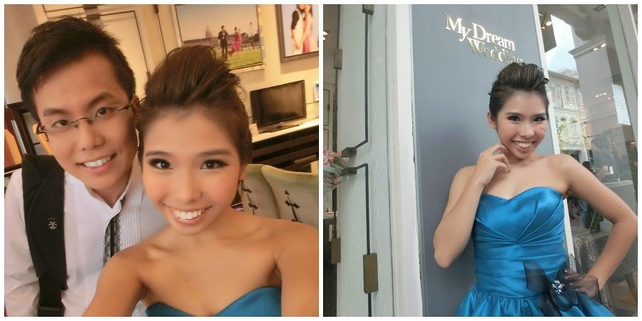 We reported at about 10am in the morning which is so late! This is the first shoot I ever had in the late morning. Usually couples have to report at about 7:30 – 8am in the morning for shoots and usually the bride will look very sleepy and usually couples will cab to the studio. However, with a shoot at 10am, I even had the time to wash & blow dry my hair. We had the time to take MRT too. Just a quick side note, we are using My Dream Wedding Transportation (Mini Bus) for our shoot later on. Therefore we are not driving because the parking will cost a bomb at these areas.